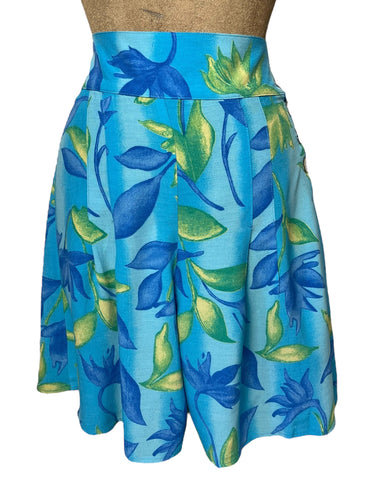 Blue Spanish Floral 1930s Style Venice Beach Swing Skirt