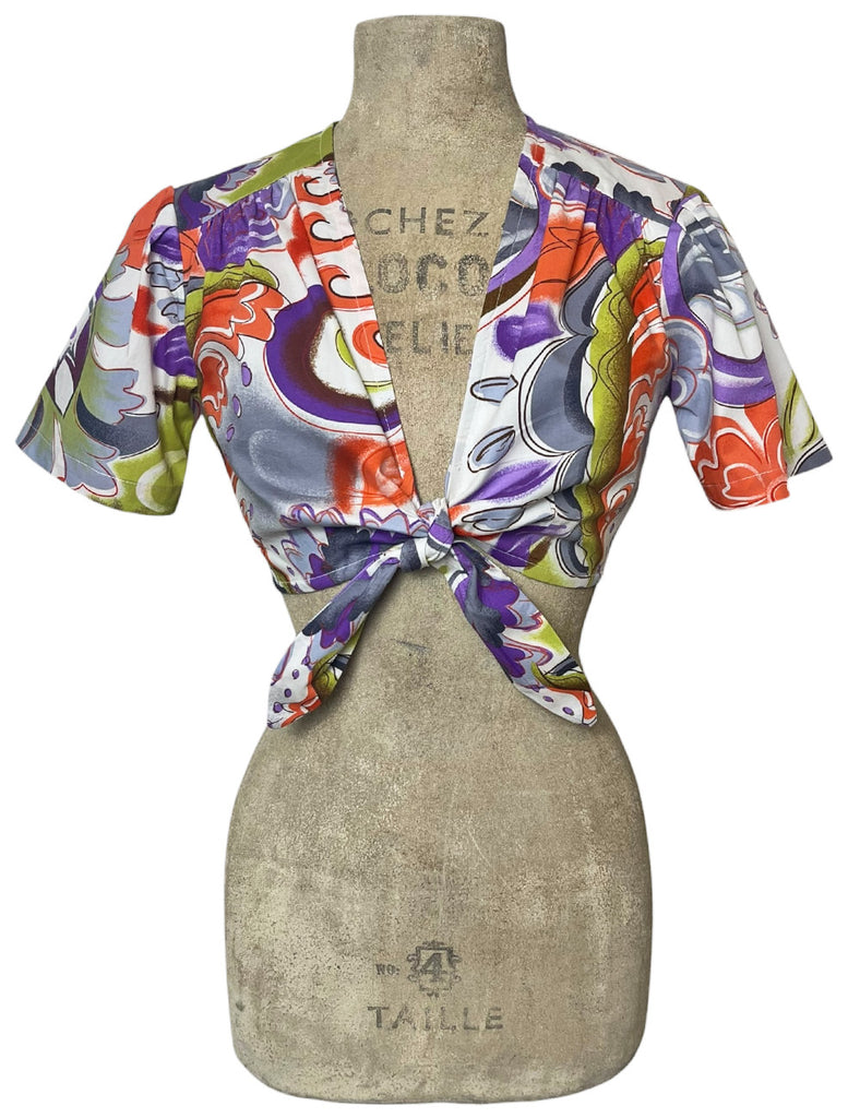 Looking for a cute summer top? Look no further! Our adorable Daisy Tie Top is the perfect vintage inspired crop top. It has short puff sleeves and a tie waist. Pair this 1940s style top with some high waisted bottoms or better yet our matching Petunia Skirt for a complete look!