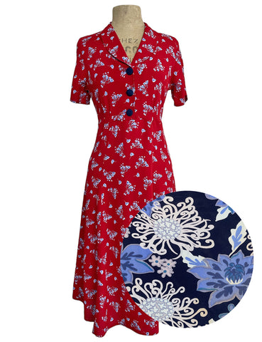 Vintage Embroidery Print Contrast 1940s Day Dress