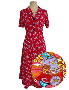 Coral Pink Tropical 1940s Style Vintage Day Dress