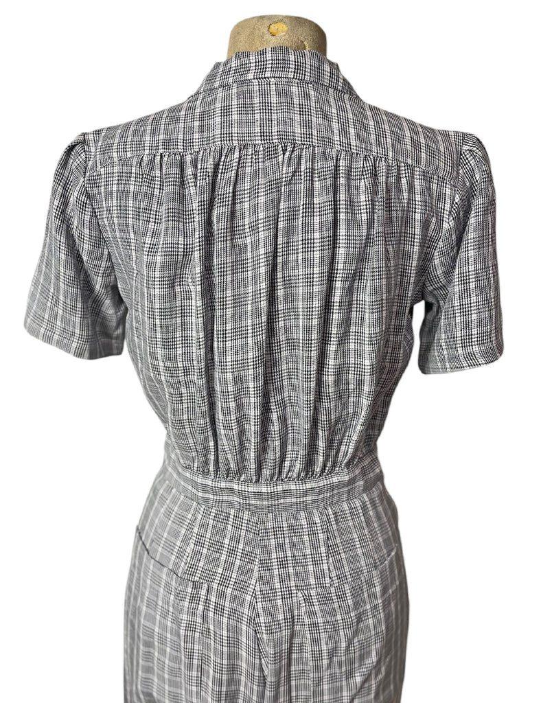 Meet our adorable 1940s inspired Pacific Coveralls from our Scout for Loco Lindo Collection! They are a one piece style with short sleeves and long wide leg pants. This jumpsuit has pockets and more pockets, from two small front breast pockets to two fully functioning side and large back pockets! The waist has a button front makes for easy wear for any everyday activity without ever sacrificing classic style!