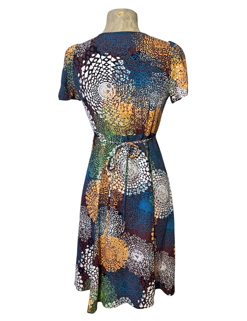 This great vintage inspired dress got it's name after imagining a stunning Rita Hayworth floating around in this beauty!  This dress has short sleeves with a little ruching, flattering v-neckline, a tea length skirt and lastly a string tie that allows you to cinch in the waist as much as you like!   This dress has no closures, it is a pullover design for grab and go wear with all the comfort yet style you could desire!
