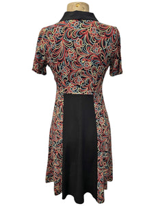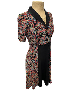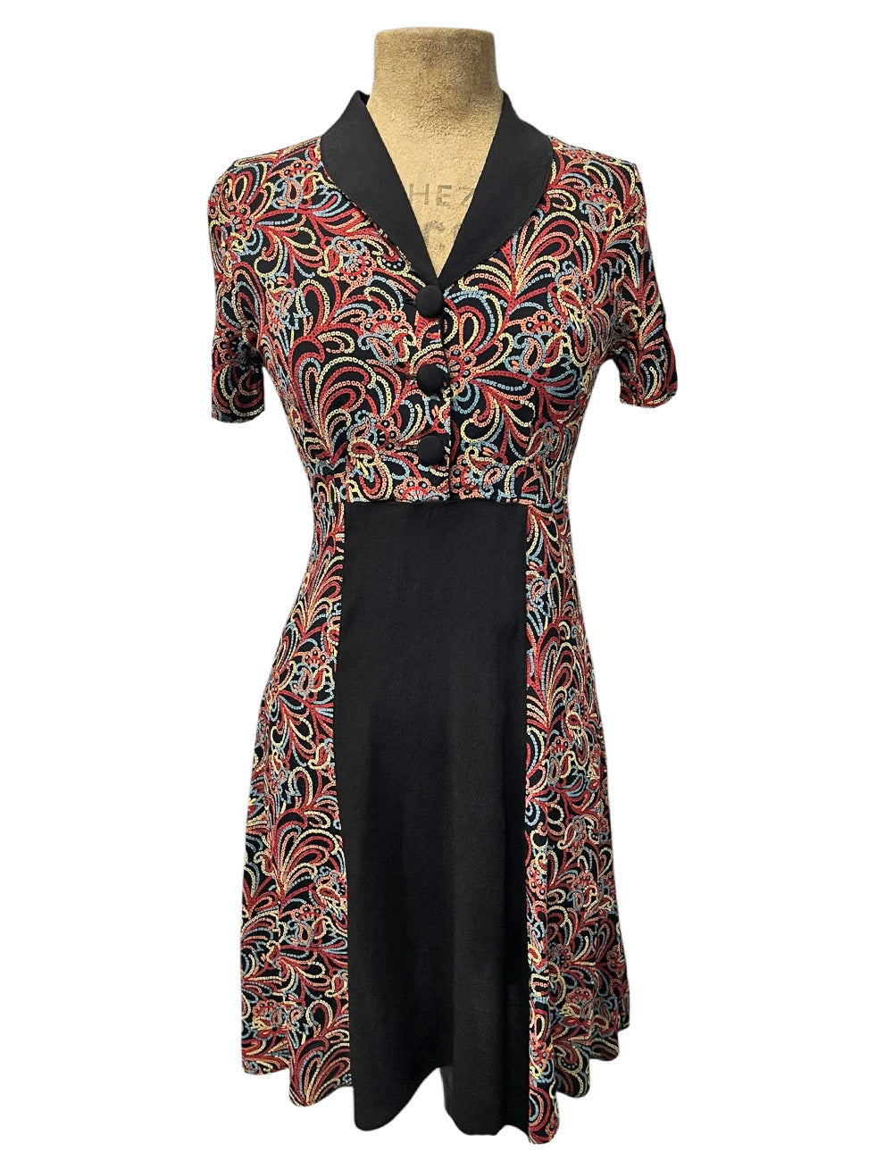 Vintage Embroidery Print Contrast 1940s Day Dress